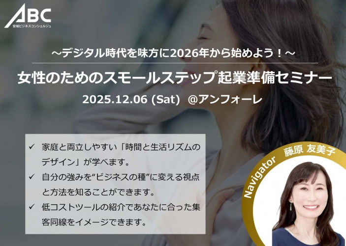 【~デジタル時代を味方に2026年から始めよう!~女性のためのスモールステップ起業準備セミナー】