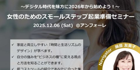 【~デジタル時代を味方に2026年から始めよう!~女性のためのスモールステップ起業準備セミナー】