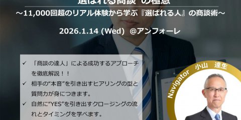 【“選ばれる商談”の極意〜11,000回超のリアル体験から学ぶ『選ばれる人』の商談術〜】14:00~15:30