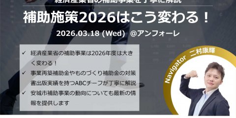 【補助施策2026はこう変わる!~経済産業省の補助事業を丁寧に解説~】14:00~15:30