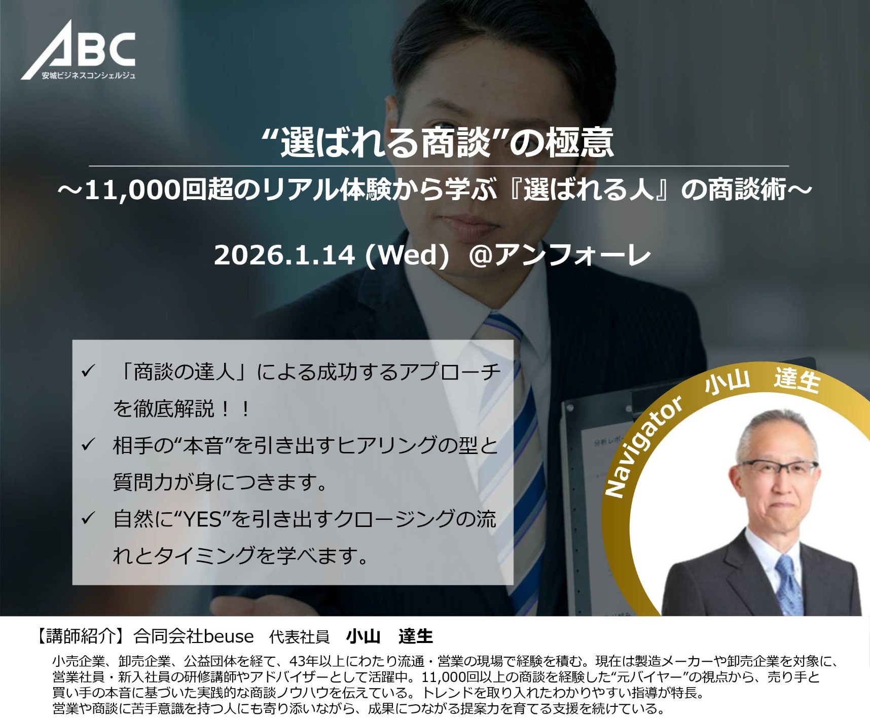 【“選ばれる商談”の極意〜11,000回超のリアル体験から学ぶ『選ばれる人』の商談術〜】14:00~15:30